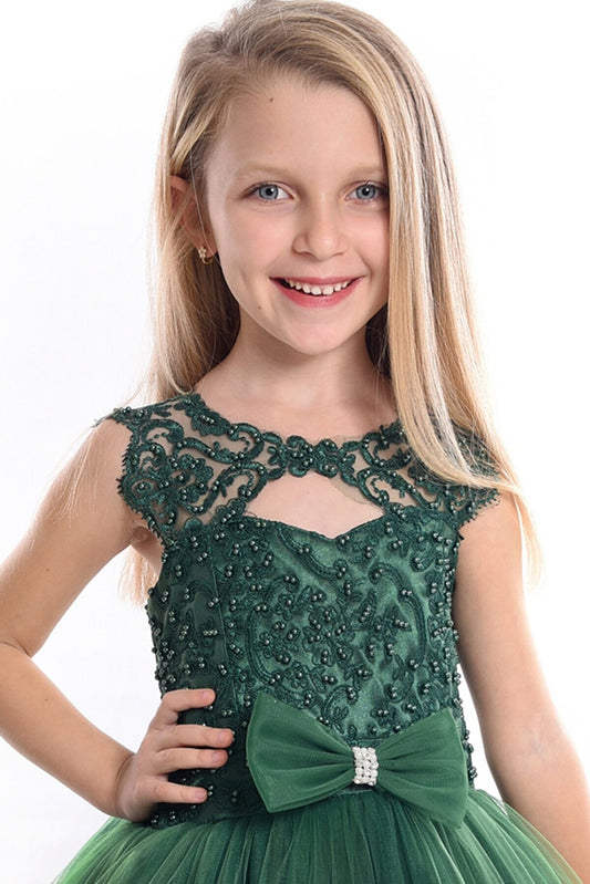 Bow and Pearl Body Guipure Party Dress For Birthday, Prom And Weddings