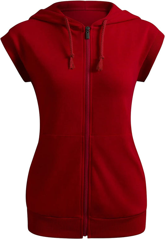 Wholesale Women's Short Sleeve Fleece Hoody Classic Drawstring Pullover