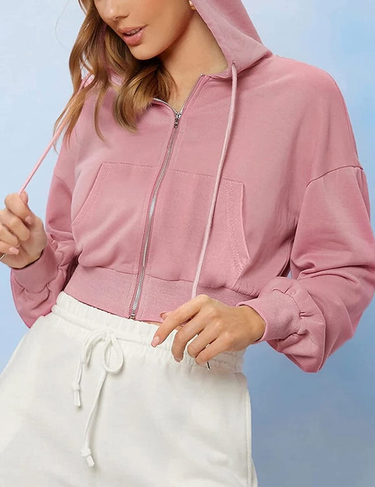 Wholesale Women's Long Sleeve Cropped Zip Up Hoodies