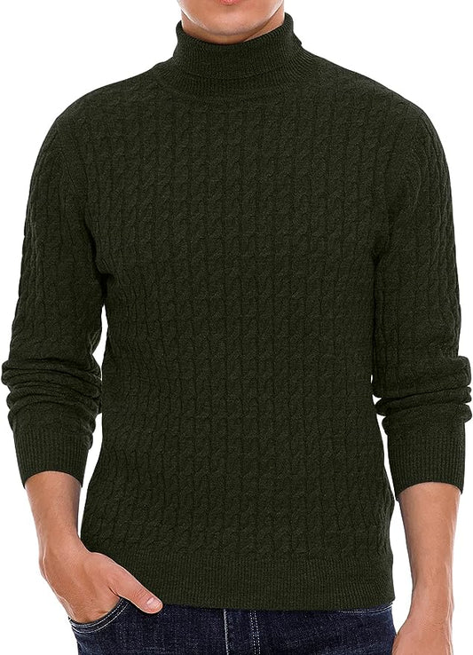 Men's Twisted Knitted Turtleneck Sweater Casual Soft Pullover Sweaters - Army Green
