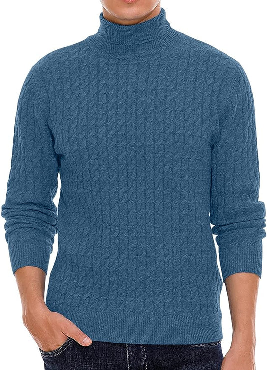 Men's Twisted Knitted Turtleneck Sweater Casual Soft Pullover Sweaters - Blue