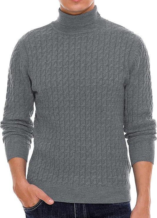 Men's Twisted Knitted Turtleneck Sweater Casual Soft Pullover Sweaters - Grey