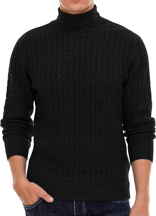 Men's Twisted Knitted Turtleneck Sweater Casual Soft Pullover Sweaters - Black