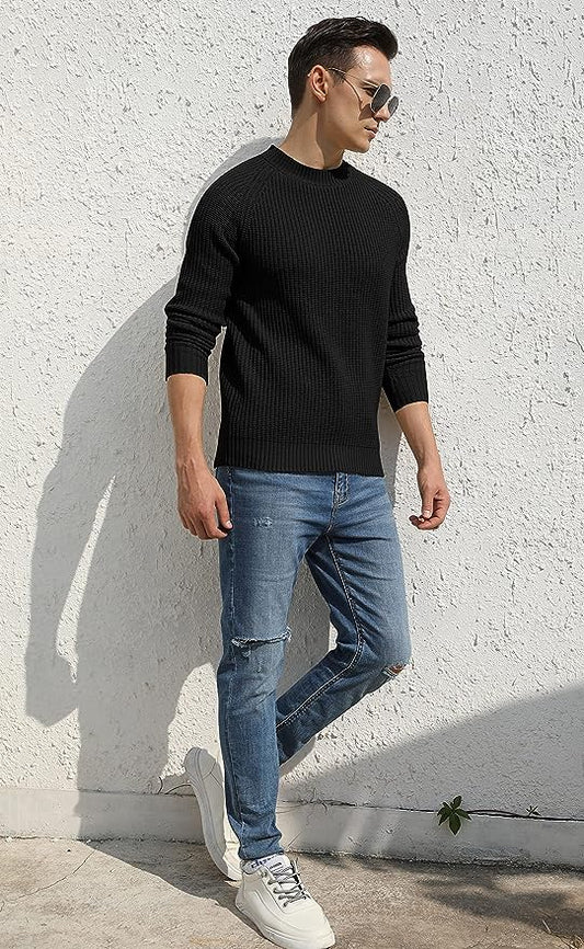 Men's Crewneck Casual Sweater Structured Knit Pullover - Black