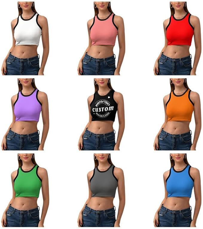 Women's Custom Crop Tops, Personalized Crop Bra, Promotional Tank Tops - All Colors